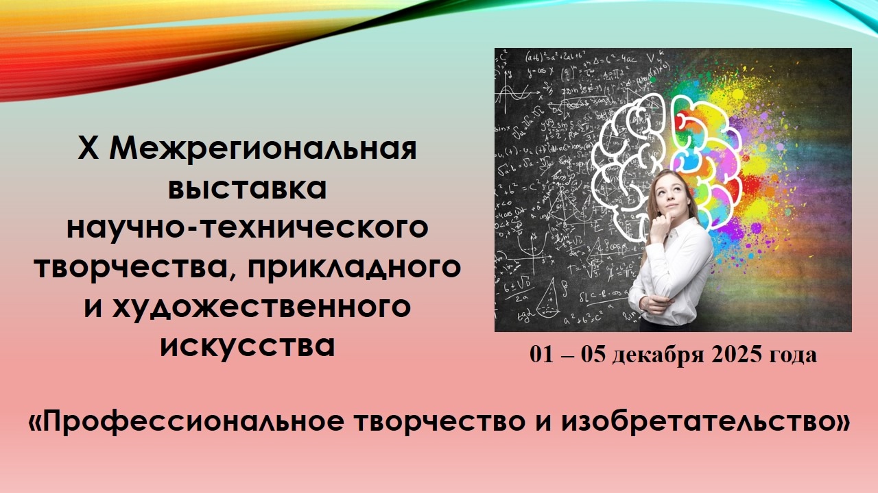 С 1 по 5 декабря 2025 года состоится Х Межрегиональная выставка научно-технического творчества и искусства студентов «Профессиональное творчество и изобретательство». Участники представят проекты в номинациях: профессиональное мастерство, учебные экспонаты, научные инновации и творческие работы. Все авторы получат сертификаты, а победители — дипломы и благодарности научным руководителям.